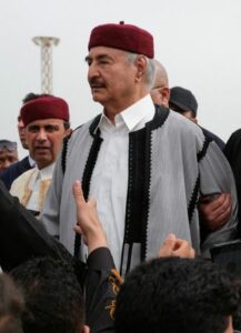 FILE PHOTO: Libyan military commander Khalifa Haftar attends a carnival to celebrate Eid El Fitr in a public square in Benghazi, Libya April 21, 2023. REUTERS/Esam Omran Al-Fetori/File Photo