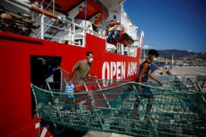 Foto de archivo de inmigrantes rescatados por un barco de la ONG Open Arms en el puerto de Messina en Sicilia