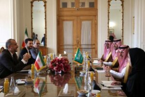 Iranian Foreign Minister Hossein Amir-Abdollahian meets with Saudi Arabia’s Foreign Minister Prince Faisal bin Farhan Al Saud in Tehran, Iran June 17, 2023. Majid Asgaripour/WANA via REUTERS