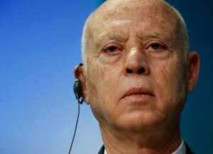 FILE PHOTO: Tunisia’s President Kais Saied gives a statement on the coronavirus disease (COVID-19) vaccination, during a European Union – African Union summit, in Brussels, Belgium February 18, 2022. REUTERS/Johanna Geron/Pool/File Photo