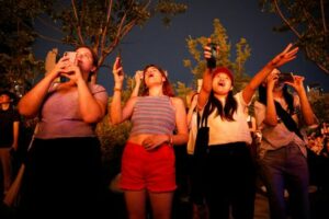 Fans of the K-pop boy band BTS watch fireworks during BTS 10th Anniversary FESTA in Seoul, South Korea, June 17, 2023. REUTERS/Kim Soo-hyeon