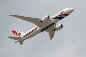 FILE PHOTO: A Biman Bangladesh Airlines Boeing 787-8 puts on a display at the Farnborough Airshow, in Farnborough, Britain July 16, 2018. REUTERS/Peter Nicholls/File Photo