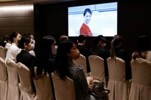 Applicants sit in a waiting room during the Cathay Pacific’s flight attendants recruitment day, first time since the COVID-19 pandemic, in Hong Kong, China October 7, 2022. REUTERS/Tyrone Siu/File photo