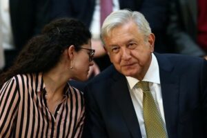 FOTO DE ARCHIVO. El presidente de México, Andrés Manuel López Obrador, escucha a la ministra de Trabajo, Luisa Alcalde, durante una reunión con jefes de la industria y miembros de su gabinete para discutir la política de la nueva administración sobre el salario mínimo en Palacio Nacional de Ciudad de México, México, el 17 de diciembre de 2018. REUTERS/Edgard Garrido