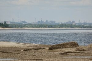 Zaporizhstal Plant from the bank of Kakhovka Reservoir near Zaporizhzhia