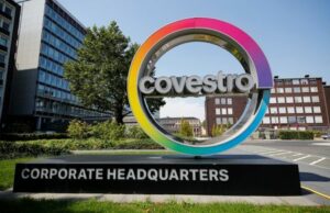 Archiv: Das Logo des deutschen Chemieunternehmens Covestro vor dem Hauptsitz