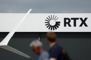 A Raytheon Technologies (RTX) logo is pictured during the 54th International Paris Airshow at Le Bourget Airport near Paris, France, June 19, 2023. REUTERS/Benoit Tessier