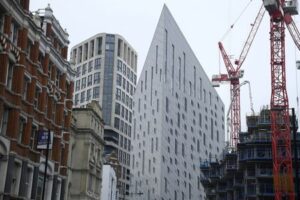 FILE PHOTO: Construction work is seen amongst residential and commercial buildings in east London, Britain, February 7, 2017. REUTERS/Toby Melville/ File Photo