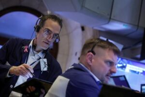Traders work on the floor of the New York Stock Exchange (NYSE) in New York City, U.S., May 11, 2023. REUTERS/Brendan McDermid