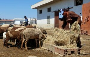 Tunisian farmer Nabil Rhimi feeds his sheep at his farm