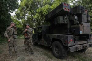 Ukrainian servicemen stand next to an AN/TWQ-1 Avenger mobile air defence missile system during their combat shift, amid Russia’s attack on Ukraine, outside of Kyiv, Ukraine June 16, 2023. REUTERS/Anna Voitenko