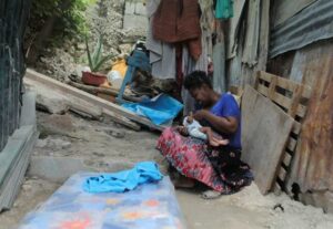 Una mujer sonríe mientras alimenta a su bebé en un campamento para personas desplazadas en Puerto Príncipe, Haití. Junio 19, 2023. REUTERS/Ralph Tedy Erol
