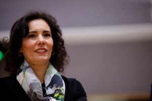 FILE PHOTO: Belgium’s Foreign Minister Hadja Lahbib attends a European Union foreign ministers meeting, in Brussels, Belgium February 20, 2023. REUTERS/Johanna Geron