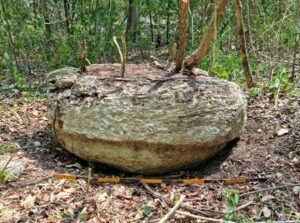 Una vista muestra una parte de una piedra de un altar después de que arqueólogos del Instituto Nacional de Antropología e Historia (INAH) de México descubrieran una antigua ciudad maya dentro de la reserva ecológica de Balamku, en el estado de Campeche, México, en esta foto difundida y distribuida por el Instituto Nacional de Antropología e Historia de México el 20 de junio de 2023. Instituto Nacional de Antropología e Historia de México/Handout vía REUTERS