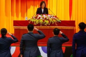 Students salute Taiwan’s President Tsai Ing-wen during a graduation ceremony