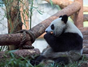 FILE PHOTO: A giant panda eats inside an enclosure at the Moscow Zoo on a hot summer day in the capital Moscow, Russia June 7, 2019. REUTERS/Tatyana Makeyeva/File Photo