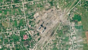 FILE PHOTO: View of an ammunition depot destroyed, amid Russia’s attack on Ukraine, in Rykove, Russian-controlled Ukraine June 19, 2023. Planet Labs PBC/Handout via REUTERS/File Photo