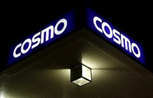 FILE PHOTO: A light is seen under a signboard of Cosmo Energy Holdings’ Cosmo Oil service station in Tokyo, Japan, December 17, 2015. Picture taken December 17, 2015. REUTERS/Yuya Shino/File Photo