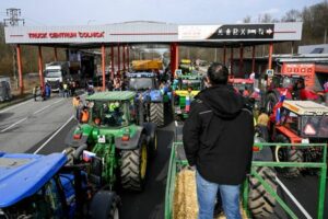 Farmers use their tractors during a protest against the European Union’s agricultural policies, grievances shared by farmers across Europe, at the Czech-Slovak border near Holic, Slovakia, February 22, 2024. REUTERS/Radovan Stoklasa