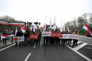 Farmers gather during a protest against the European Union’s agricultural policies, grievances shared by farmers across Europe, at the Czech-Slovak border near Holic, Slovakia, February 22, 2024. REUTERS/Radovan Stoklasa