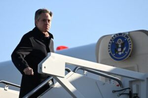 El secretario de Estado de Estados Unidos, Antony Blinken, sube a un avión en la Base Conjunta Andrews, Maryland, Estados Unidos. 11 de marzo de 2024. ANDREW CABALLERO-REYNOLDS/Pool vía REUTERS