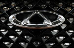 FILE PHOTO: A view shows a car logo of Chinese automobile manufacturer Chery at a dealership in Vladivostok, Russia, March 22, 2023. REUTERS/Tatiana Meel/File Photo