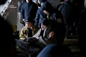 Emergency service members work after a Russian missile slammed into two apartment buildings in the central Ukrainian city of Kryvyi Rih, March 12, 2024. State Emergency Service Of Ukraine/Handout via REUTERS