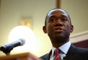 FILE PHOTO: U.S. Deputy Treasury Secretary Wally Adeyemo speaks at the Royal United Services Institute in London, Britain, October 27, 2023. REUTERS/Hannah McKay/File Photo