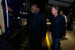 Britain’s Foreign Secretary David Lammy and U.S. Secretary of State Antony Blinken board a train, as they prepare to travel to Ukraine, in Przemysl, Poland, September 11, 2024. The British Foreign Secretary joined his American counterpart on a visit to Ukraine to discuss the country’s military needs in its fight against Russia. Leon Neal/Pool via REUTERS