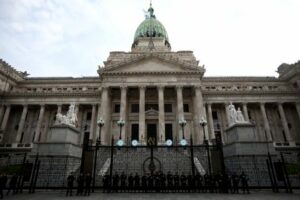 Personal de seguridad monta guardia fuera del Congreso nacional argentino, en Buenos Aires, Argentina June 27, 2024. REUTERS/Tomas Cuesta