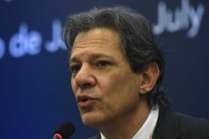 FOTO DE ARCHIVO-El ministro de Hacienda de Brasil, Fernando Haddad, habla durante una rueda de prensa durante la reunión de líderes financieros del G20 en Río de Janeiro, Brasil. 26 de julio de 2024. REUTERS/Tita Barros