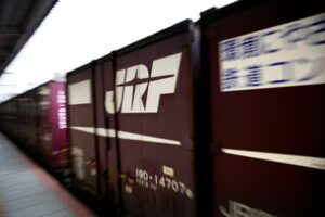FILE PHOTO: A Japan Rail (JR) freight train passes through a train station in Osaka October 24, 2017. REUTERS/Thomas White/File Photo