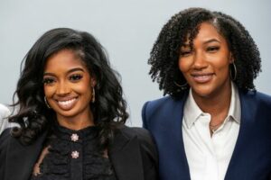 FILE PHOTO: Fearless Fund co-partners Arian Simone and Ayana Parsons attends a press conference in New York, U.S., August 10, 2023. REUTERS/Eduardo Munoz