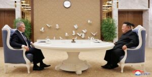 North Korean leader Kim Jong-un, meets with Sergei Shoigu, Secretary of the Security Council of Russia, in this photo released by North Korea’s official Korean Central News Agency September 14, 2024. KCNA via REUTERS