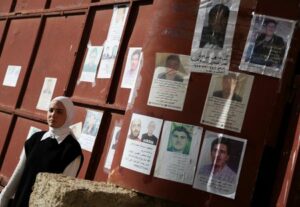 FOTO DE ARCHIVO. Una mujer junto a carteles de personas desaparecidas que se encontraban en el interior de la prisión de Sednaya, conocida como el matadero del régimen sirio de Bashar al-Asad, después de que los combatientes del actual grupo gobernante sirio lo derrocaran, en Sednaya, Siria. 16 de diciembre de 2024. REUTERS/Amr Abdallah Dalsh