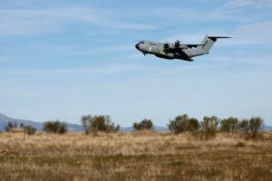FILE PHOTO: A Spanish Air and Space Force Airbus A400M flies during a test flight of the A400M firefighter kit in El Cubillo de Uceda, Spain, December 17, 2024. REUTERS/Juan Medina/File Photo