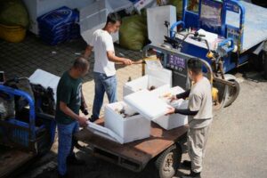 FILE PHOTO: Vendors carry lobster at a seafood market in Shanghai, China August 25, 2023. REUTERS/Aly Song/File Photo