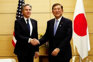 El Secretario de Estado estadounidense, Antony Blinken, estrecha la mano del primer ministro japonés, Shigeru Ishiba, en la residencia oficial de Ishiba en Tokio, Japón. 7 de enero de 2025. REUTERS/Issei Kato/Pool
