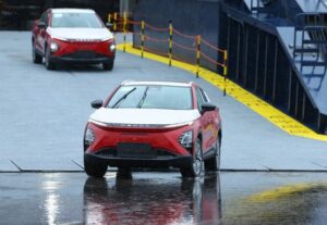 Omoda cars manufactured by Chinese automaker Chery are unloaded at