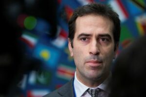 FOTO DE ARCHIVO. El ministro español de Economía, Comercio y Empresa, Carlos Cuerpo, participa en una entrevista con los medios de comunicación en la Reunión de Otoño del Fondo Monetario Internacional (FMI) y el Grupo del Banco Mundial 2024 en Washington, EEUU. 23 de octubre de 2024. REUTERS/Kaylee Greenlee Beal