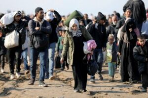Palestinians, who were displaced to the south at Israel’s order during the war, make their way on foot as they return to their homes in the northern Gaza, amid a ceasefire between Israel and Hamas, in Gaza City, January 27, 2025. REUTERS/Dawoud Abu Alkas