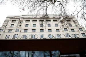 FILE PHOTO: A general view of a signage outside New Scotland Yard, the headquarters of the Metropolitan Police, in London, Britain March 21, 2023. REUTERS/Peter Nicholls/File Photo