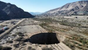FOTO DE ARCHIVO. Un socavón que quedó expuesto ha duplicado su tamaño, en una zona minera cercana a la localidad de Tierra Amarilla, en Copiapó, Chile, el 7 de agosto de 2022.. REUTERS/Johan Godoy