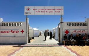 FOTO DE ARCHIVO. Varias personas esperan cerca del hospital de campaña de la Cruz Roja Internacional en el sur de Gaza, en la zona de Al-Mawasi en Ráfah, en el sur de la Franja de Gaza. 16 de mayo de 2024. REUTERS/Doaa Rouqa