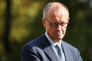 Bundeskanzler Friedrich Merz blickt auf eine Pressekonferenz am zweiten Tag einer zweitägigen Kabinettssitzung in der Villa Borsig in Berlin, Deutschland, 1. Oktober 2025. REUTERS/Liesa Johannssen
