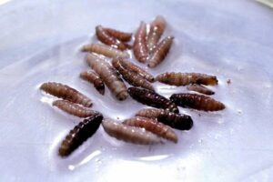 FOTO DE ARCHIVO: Larvas de la mosca del gusano barrenador, recogidas de vacas infectadas, se observan en la planta de producción de moscas estériles COPEG, que lucha contra la propagación del gusano barrenador del ganado, en Pacora, Panamá, el 11 de junio de 2025. REUTERS/Enea Lebrun/Foto de archivo
