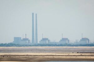 FOTO DE ARCHIVO: Una vista muestra la central nuclear de Zaporiyia desde la orilla del embalse de Kajovka, cerca de la ciudad de Níkopol, tras la rotura de la presa de Nova Kakhovka, en medio del ataque de Rusia a Ucrania, en la región de Dnipropetrovsk, Ucrania. 16 de junio de 2023. REUTERS/Alina Smutko