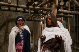 Familiares de las víctimas reaccionan en el lugar del derrumbe de un andamio de madera en el que murieron fieles, en la iglesia ortodoxa de Santa María en Arerti, Etiopía. 2 de octubre de 2025. REUTERS/ Tiksa Negeri