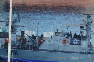 An Israeli Navy vessel arrives at Ashdod Port, after Israel intercepted some of the vessels of the Global Sumud Flotilla aiming to reach Gaza and break Israel’s naval blockade, in southern Israel, October 2, 2025. REUTERS/Ammar Awad