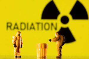 Illustration shows figurines in protective equipments and a Radiation sign